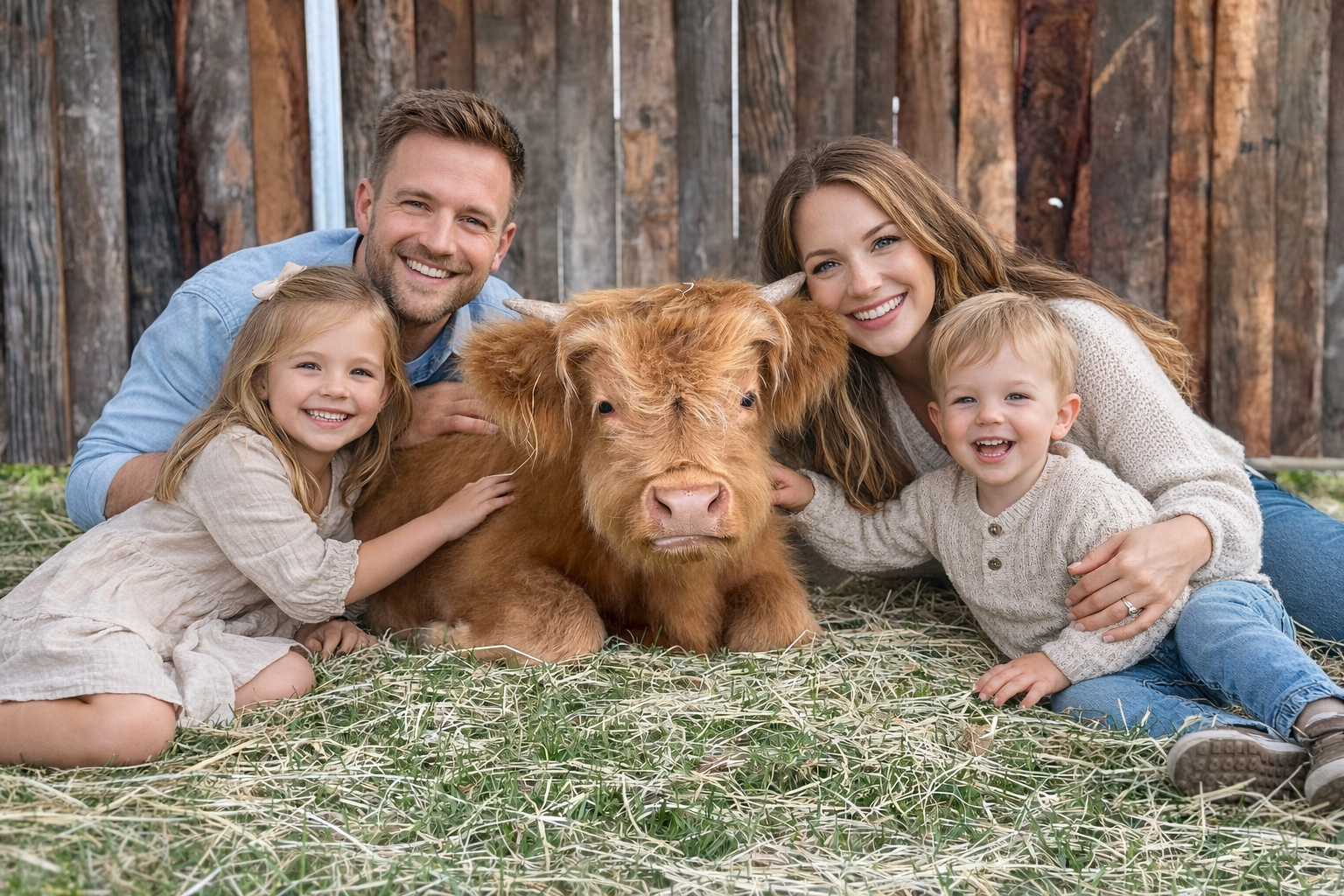 Give the gift of a truly unique experience with our farm gift cards. Perfect for birthdays, anniversaries, holidays or just because, our gift cards let your loved ones enjoy quality time with our miniature Highland Cows and the rest of our friendly animals. Whether they prefer a peaceful sunrise visit, a cosy sunset session or a fun family outing, a farm experience gift card offers something memorable, heartfelt and a little bit magical.